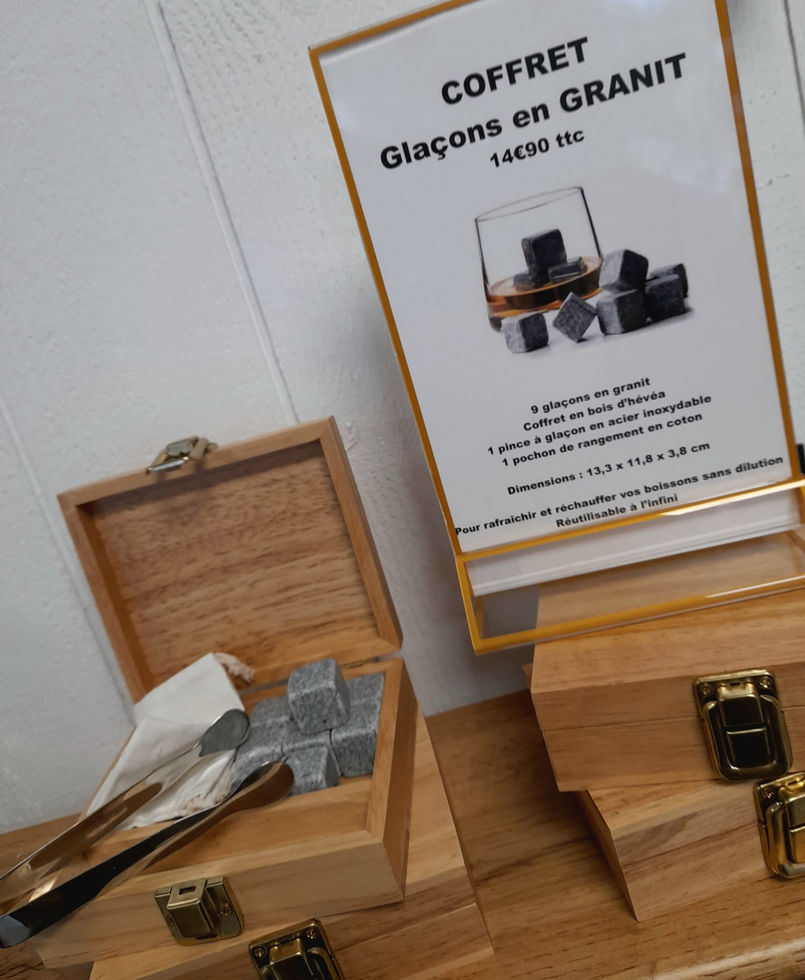 Notre coffret de Glaçon en granit, un accessoire élégant et pratique pour rafraîchir et réchauffer vos boissons sans dilution. Offrant ainsi une solution écologique et économique.